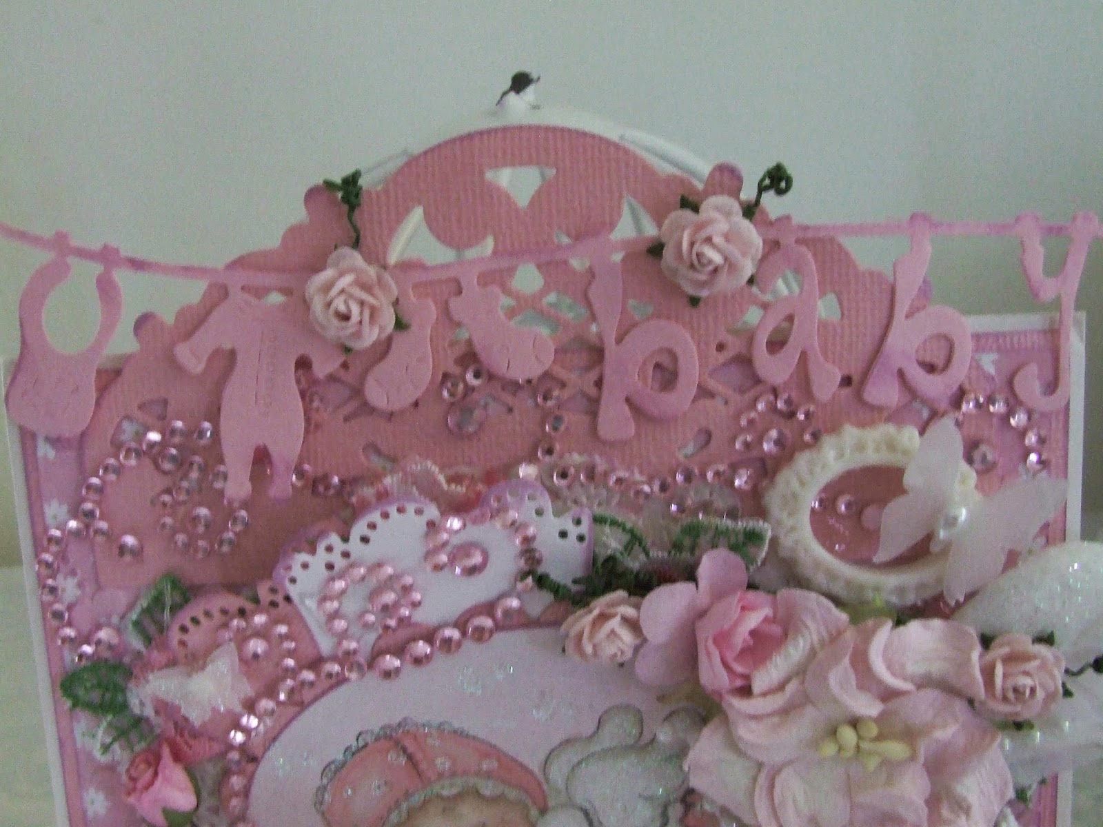 Wow so many details. Such a pretty pink baby card. Fabulous design and layout. Thanks for joining in with our 'Butterfly Kisses' at PFP this week, and good luck
